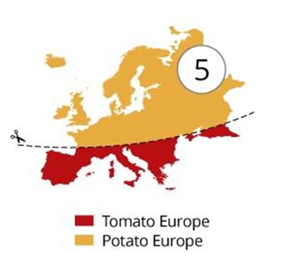 Both were crops native to the Americas and only brought to Europe after Columbus’s voyages (post-1492, part of the Columbian Exchange). So in 1491, the entire continent was “neither Potato Europe nor Tomato Europe,” making the whole map empty.